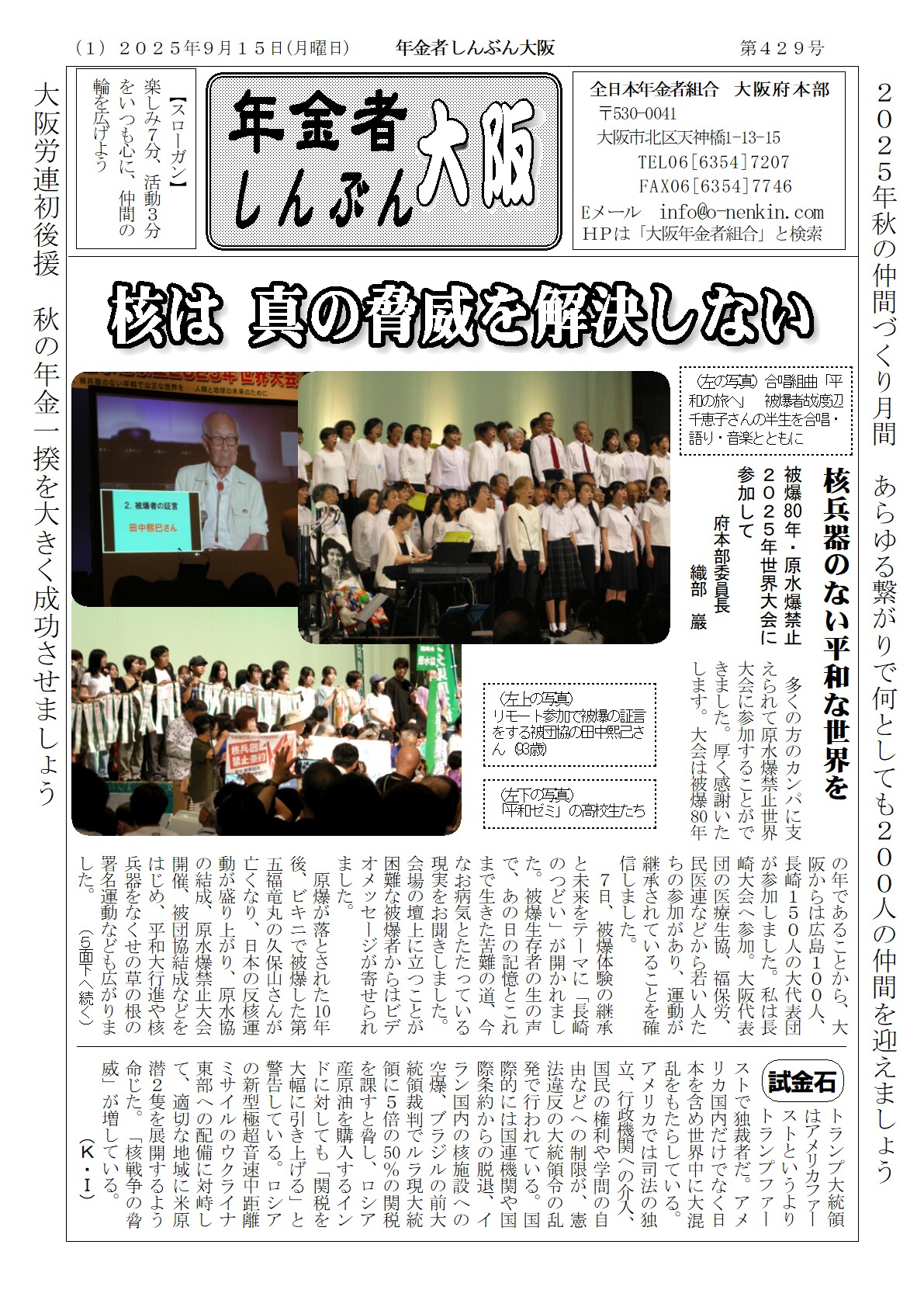 《投稿 これを許せば戦争は近くなります》藤原一郎(府本部直属)