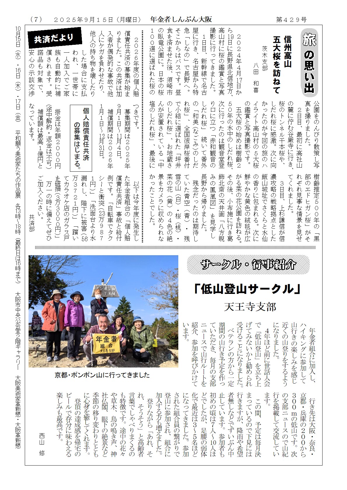 《サークル・行事紹介》「低山登山サークル」西山修( 天王寺支部)