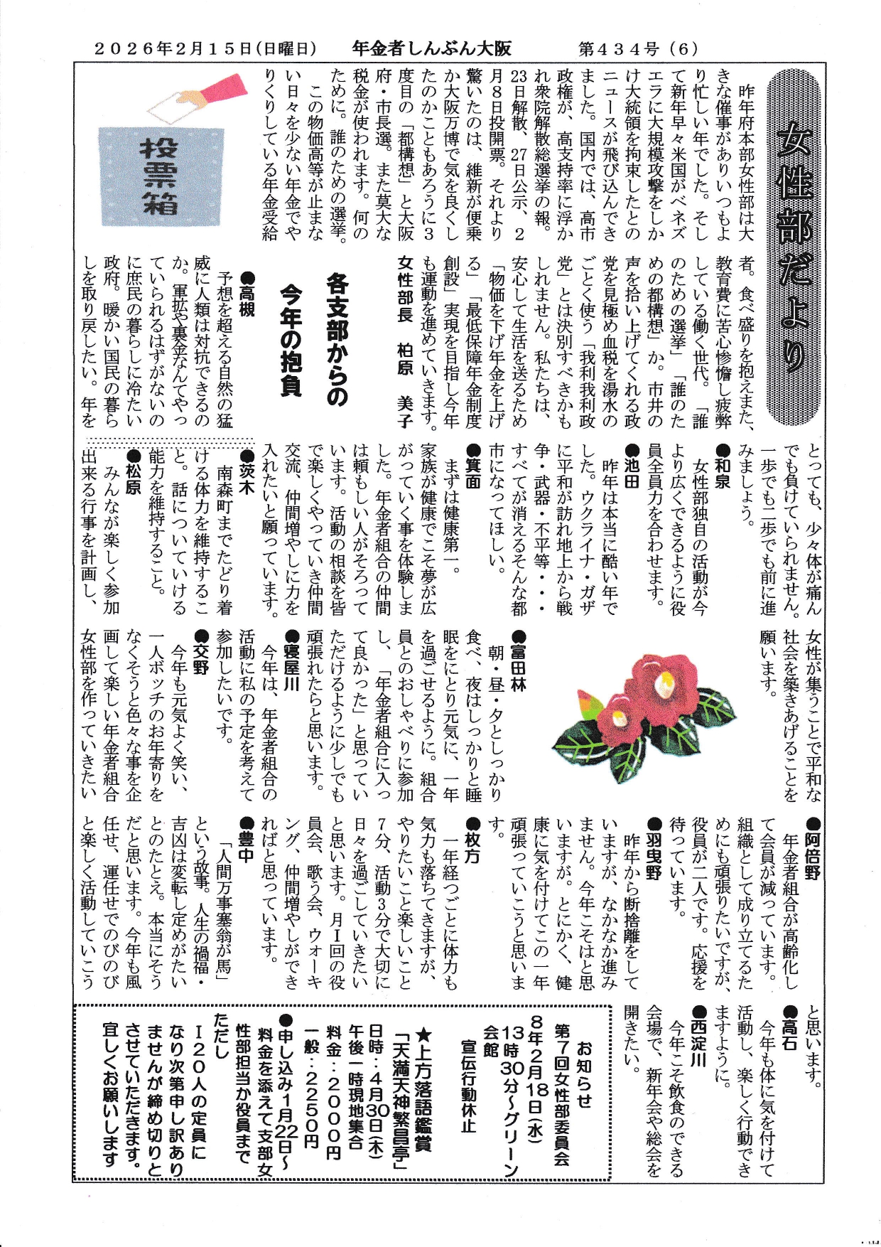 「前進座新春公演観てきました」大内芳子(松原支部)