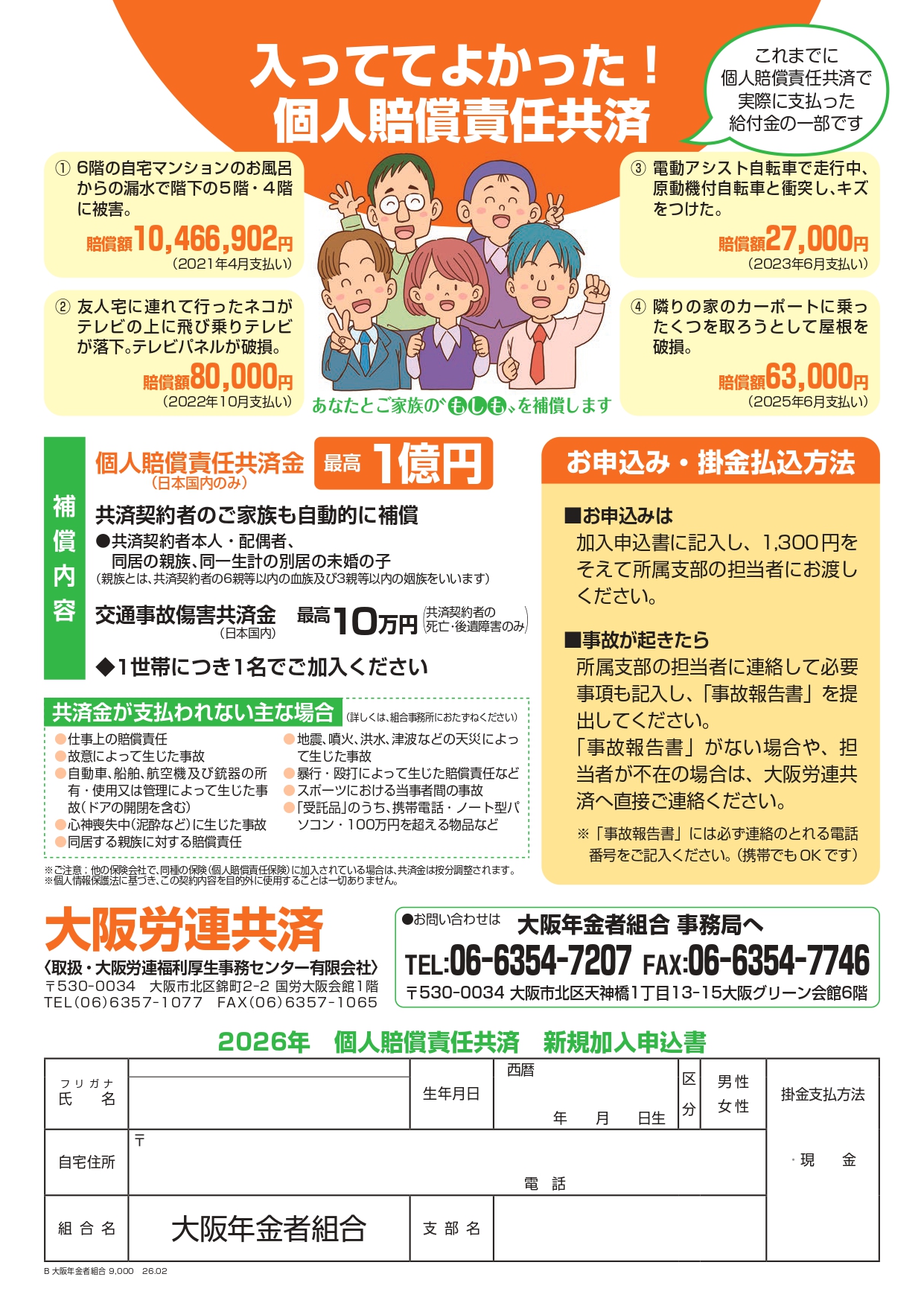 1,300円の掛金で補償期間は半年(2026年7月~12月)補償額は最高1億円