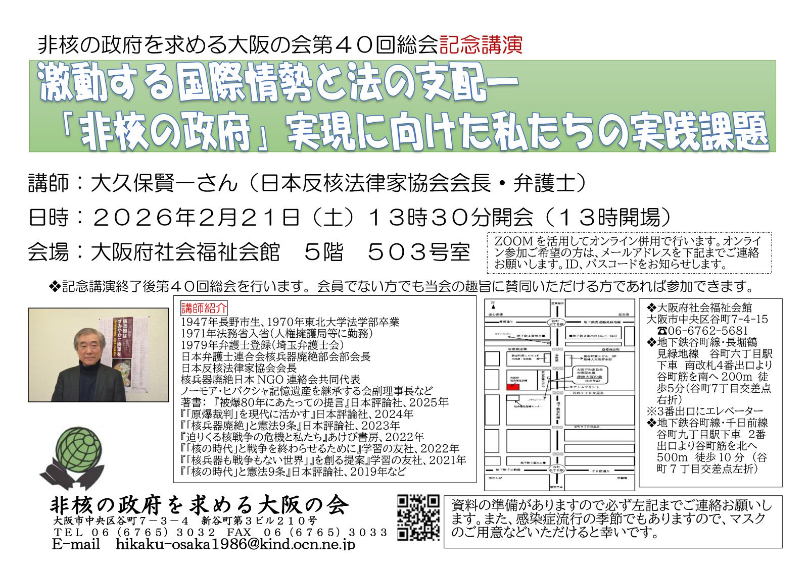 「非核の政府を求める大阪の会」第40回総会の記念講演
